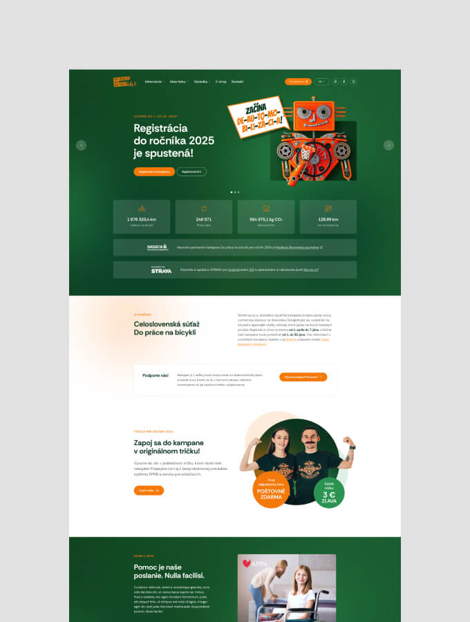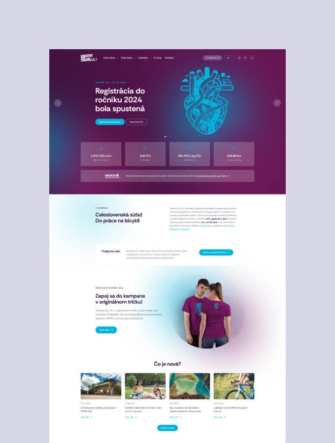 Webová stránka je v zásade navrhnutá tak, aby podporovala angažovanosť a registráciu. Každoročne vynovený dizajn priťahuje nových súťažiacich a povzbudzuje existujúcich. Pre organizáciu je kľúčové, že platforma aktívne podporuje registráciu tým, že poskytuje prehľad v reálnom čase. Registrujúce sa mestá a tímy sú zobrazené okamžite, čím sa vytvára silný pocit dynamiky a motivácie, ktorý povzbudzuje k lokálnej účasti. Vďaka bezproblémovej API komunikácii so súťažnou platformou, web zobrazuje aktuálne počty jázd a kilometrov, ktoré najazdili súťažiaci v rôznych mestách, spoločnostiach a tímoch, čím podporuje zdravú celonárodnú súťaživosť.